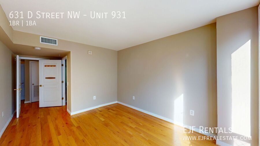 Welcome to unit 931 at the Lafayette, an elevated one bedroom condo with fresh updates and private balcony in the heart of Penn Quarter! Open and bright floor plan with gleaming hardwood floors, new light fixtures and freshly painted throughout. Spacious bedroom with floor-to-ceiling windows, access to balcony, and walk-in closet. Three-piece bathroom with soaking tub and oversized vanity. Large coat closet. Central heat + AC. The Lafayette is full service modern building. Secure with 24 hour front desk and dry cleaning services. Multiple elevators. Sunny rooftop with pool, professional grade grills, dining areas, and views of the Washington Monument, Capitol, and July 4th fireworks! Two fitness centers with new equipment and aerobics room. Business center. Movie theater. Party room with flat screen TV. Quiet, landscaped interior courtyard. Indoor garage parking available below the building with direct access elevators ($275/month). High-speed low-cost fiber optic internet ($50/month). Pet friendly! Penn Quarter is a high-energy centrally located neighborhood. Amenities are at your fingertips: restaurants, shopping, bars, theaters, music venues, The National Mall (museums, galleries, monuments), The Capital One Arena, and more! Metro and bus lines galore (Metro Center, Gallery Place, & National Archives – Blue, Orange, Red, Silver, Green & Yellow lines). I-395 and I-695 underpasses for easy transit in and out of the city.
