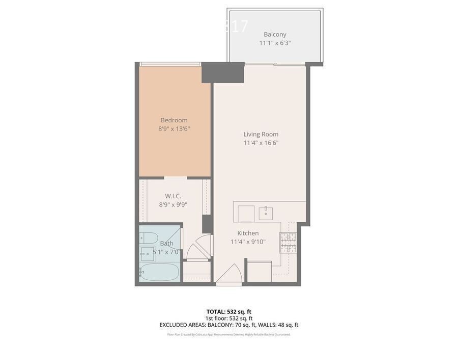 Square Footage: 581 Square Feet